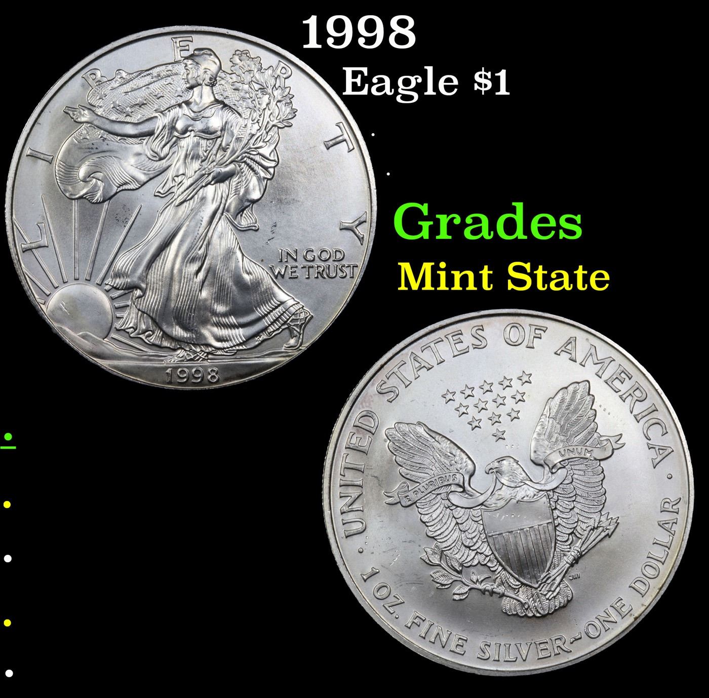 1998 Silver Eagle Dollar $1 Grades Mint State.
