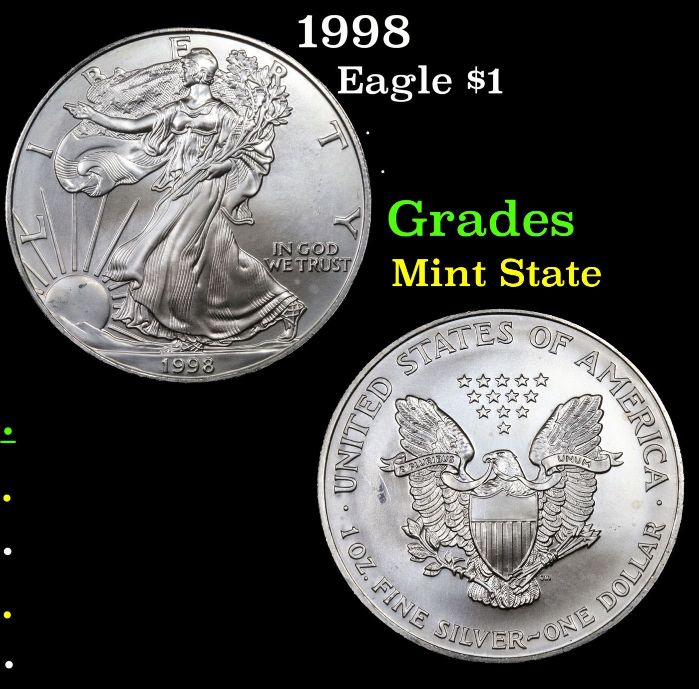 1998 Silver Eagle Dollar $1 Grades Mint State.