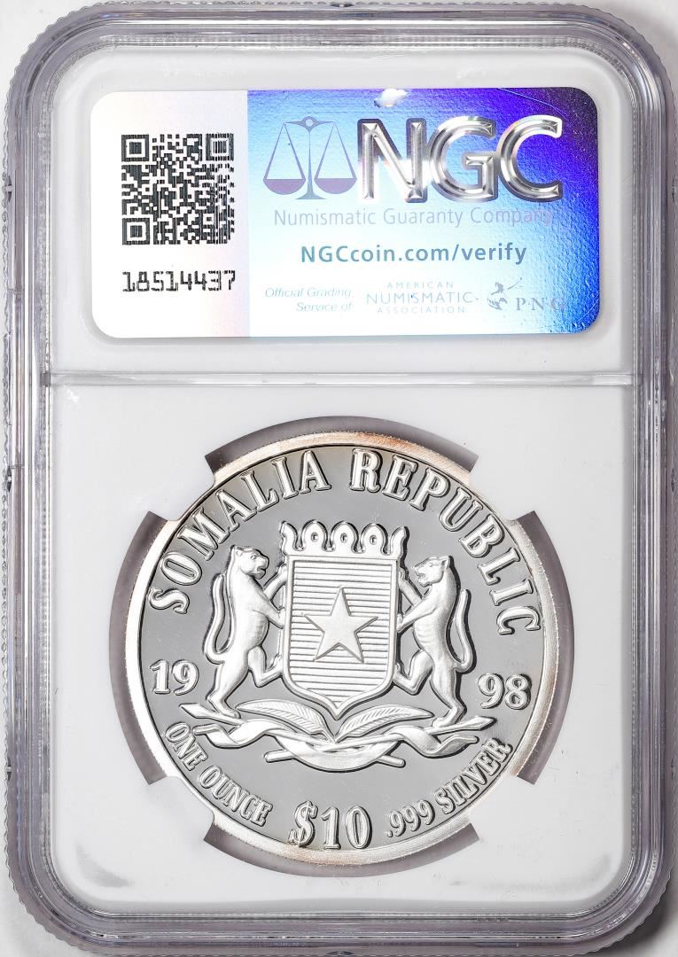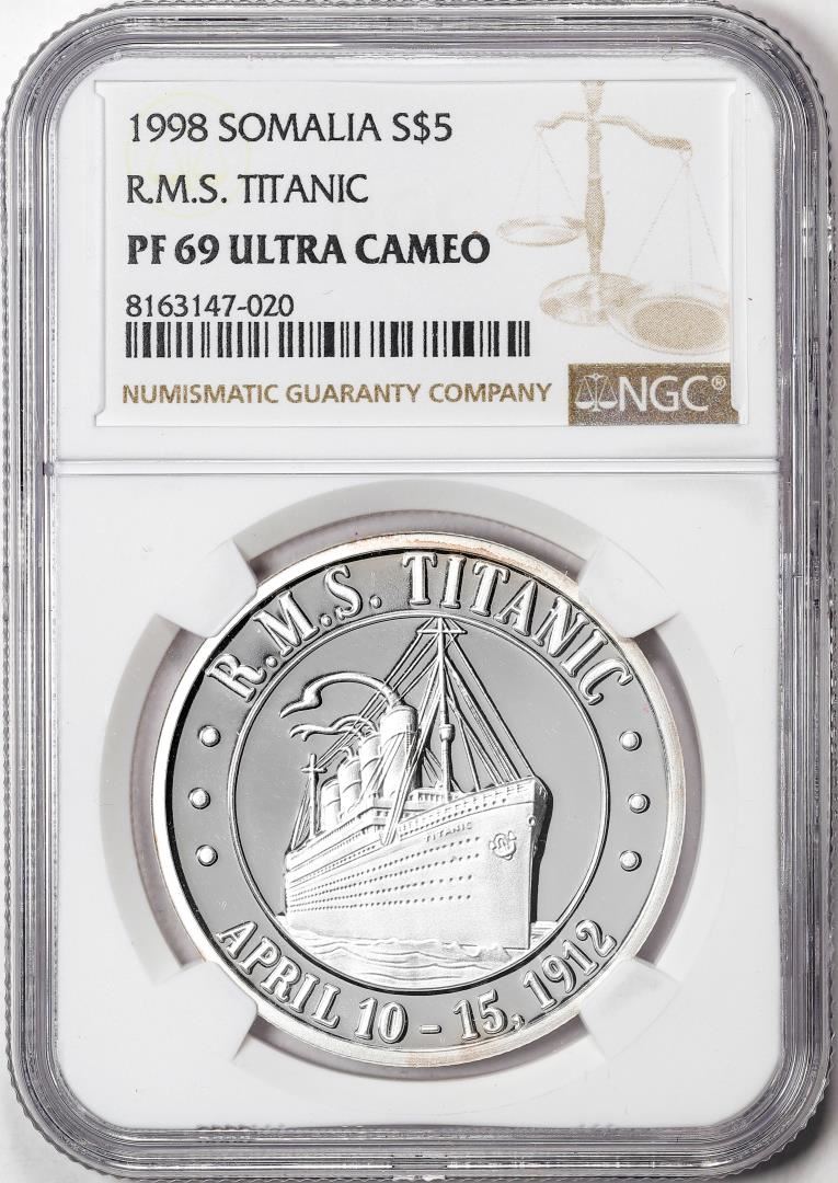 One 1998 Somalia $5 Proof R.M.S. Titanic Silver Coin NGC PF69 Ultra Cameo. NGC Certified.