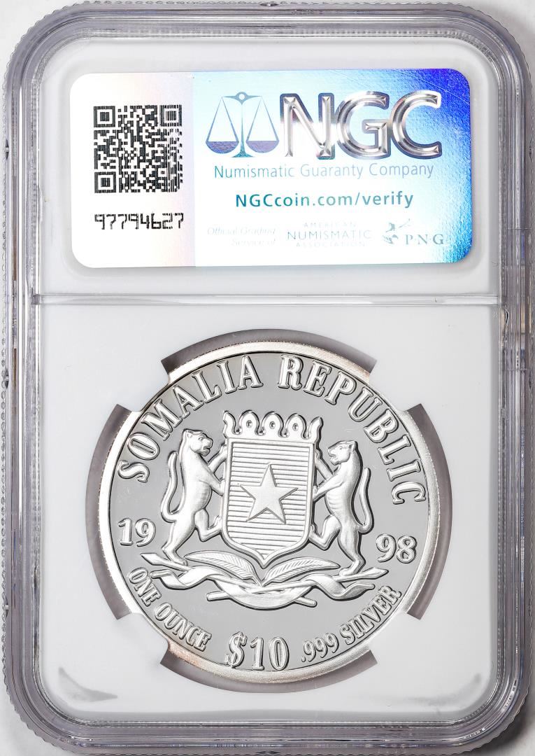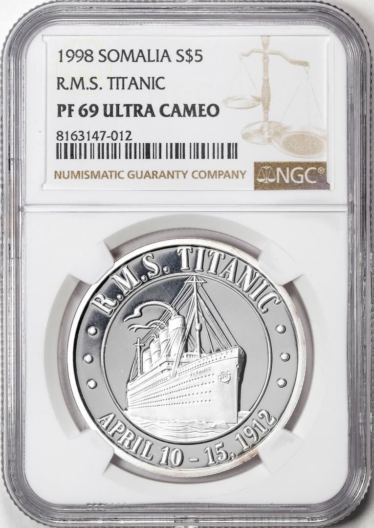 One 1998 Somalia $5 Proof R.M.S. Titanic Silver Coin NGC PF69 Ultra Cameo. NGC Certified.