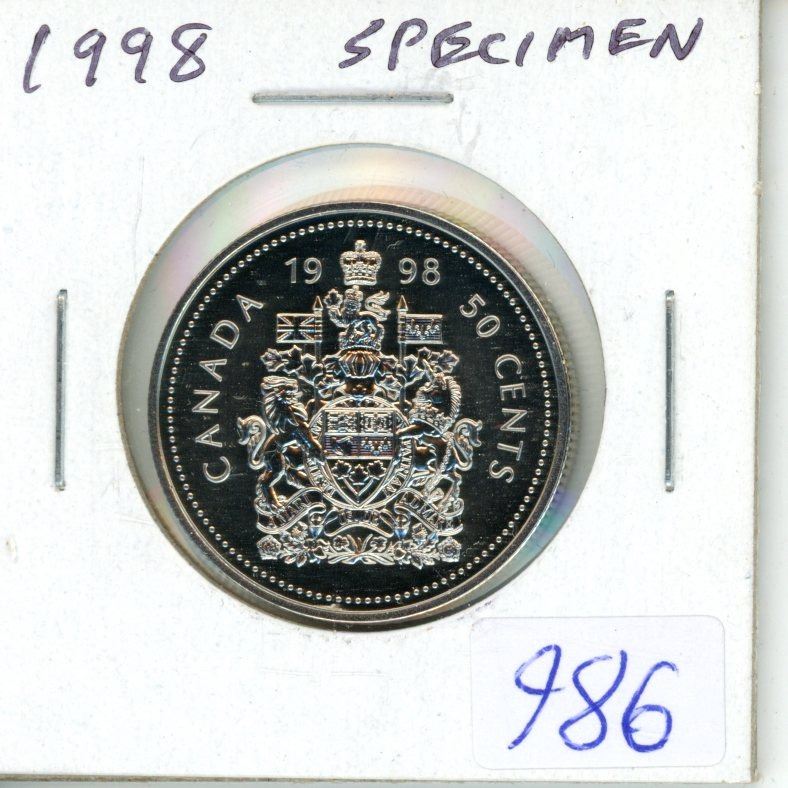 1998 Specimen 50 Cents. The special finish on the coin is a three-fold combination of brilliant and frosted relief on a lined finish background.