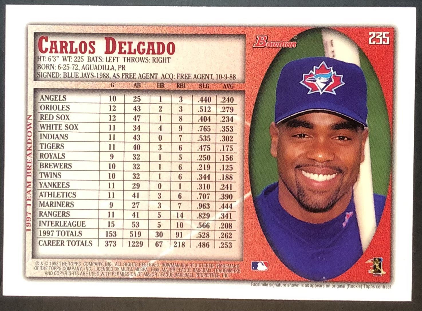 Card #235 MLB, baseball, hall of fame