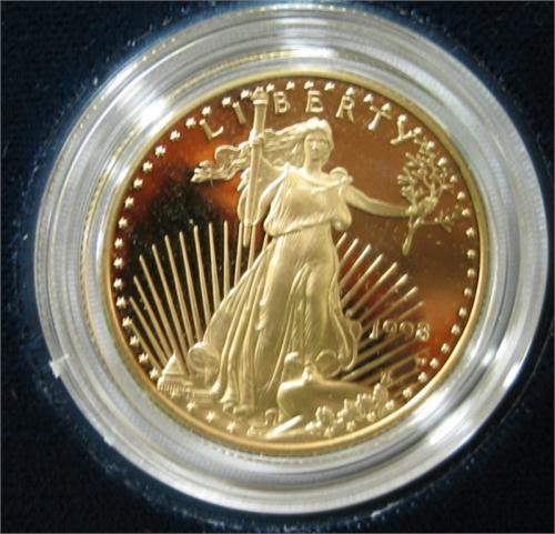1998 U.S. GOLD LIBERTY 4 COIN SET. Proof. Consists of $50 gold coin, $25 gold coin, $10 gold coin, and $5 gold coin.