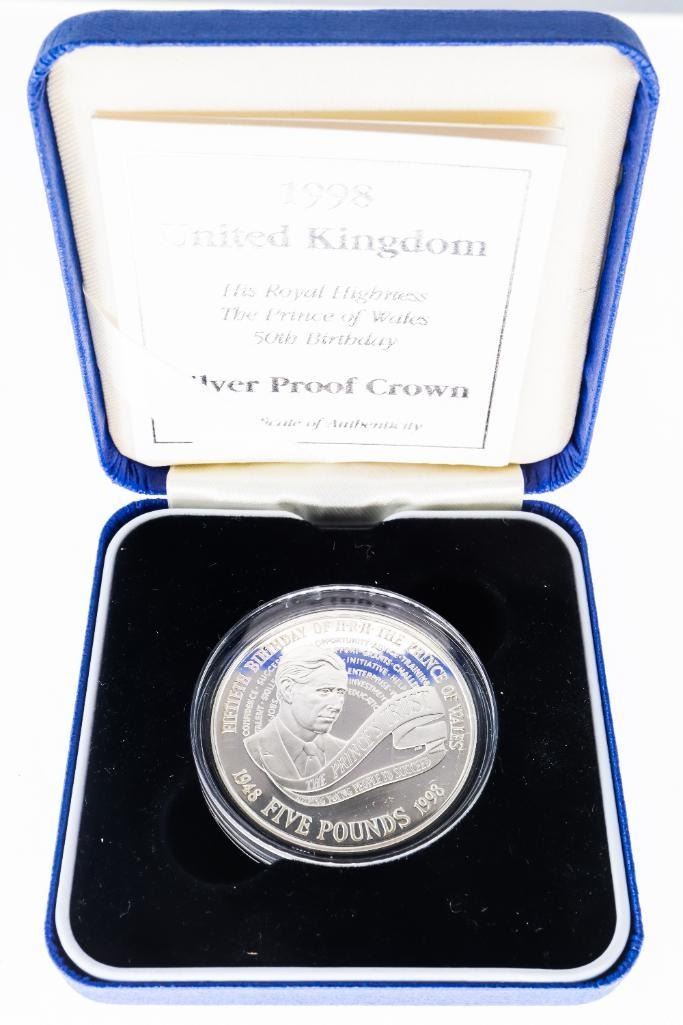 1998 UK Prince of Wales 50th Birthday Silver Proof Crown
