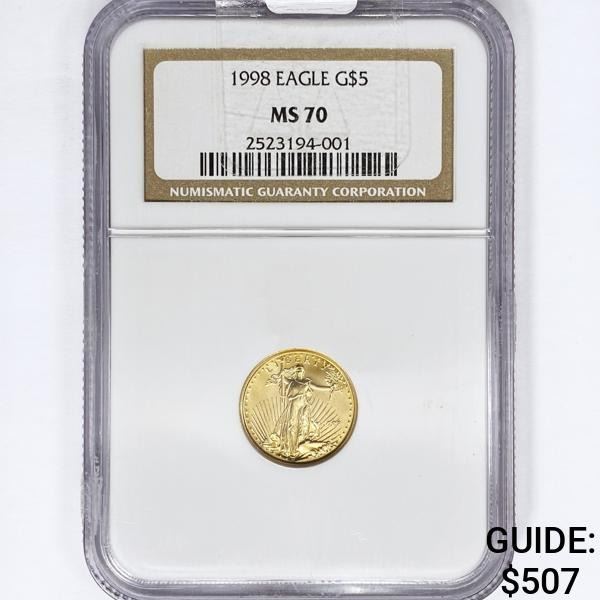 1998 US 1/10oz Gold $5 Eagle NGC MS70