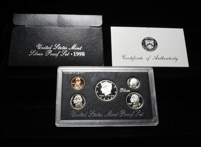 This set contains a 90% silver Half Dollar, a 90% Silver Quarter and a 90% Silver Dime. Also all 5 pieces are Deep Cameo. Estimated Value $30