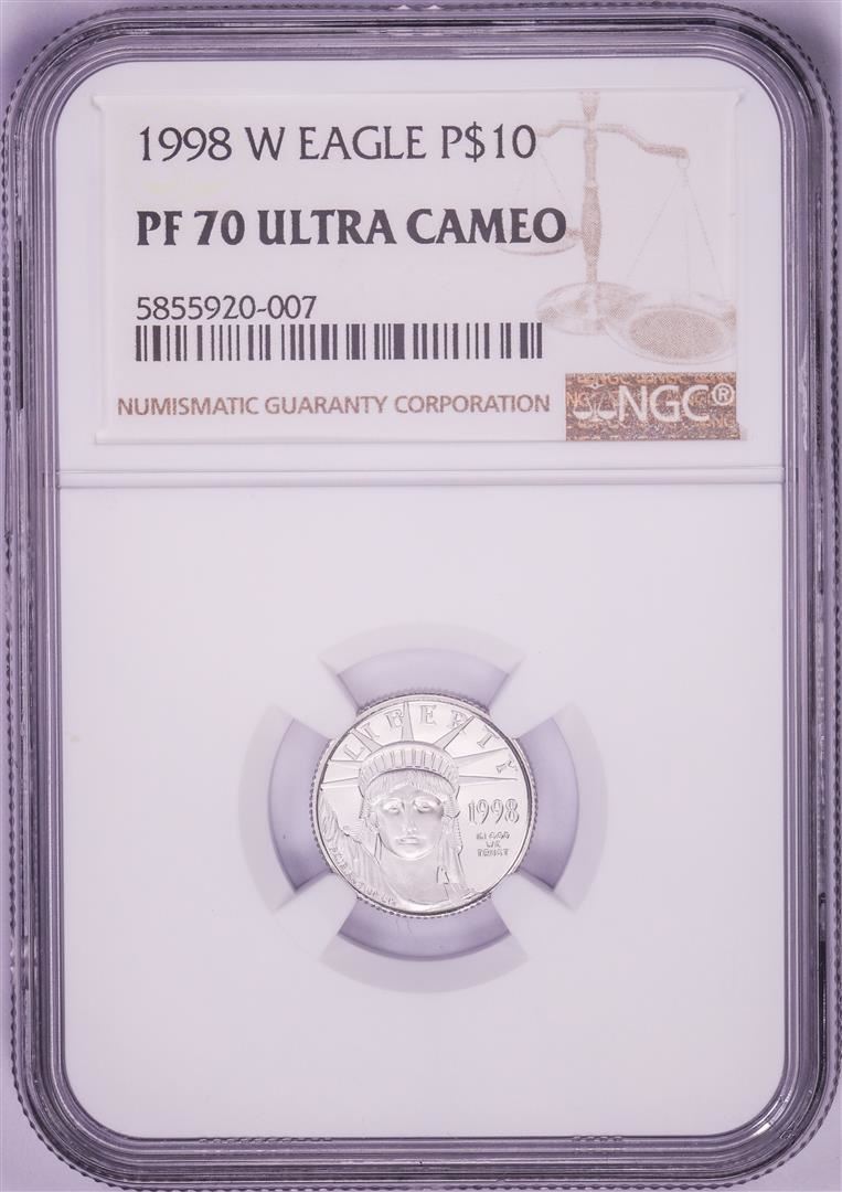 One 1998-W $10 Proof American Platinum Eagle Coin NGC PF70 Ultra Cameo. NGC Certified.