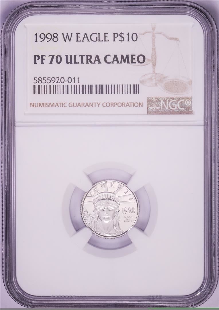 One 1998-W $10 Proof American Platinum Eagle Coin NGC PF70 Ultra Cameo. NGC Certified.