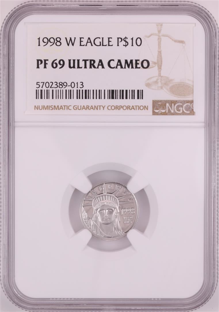 One 1998-W $10 Proof Platinum American Eagle Coin NGC PF69 Ultra Cameo. NGC Certified.