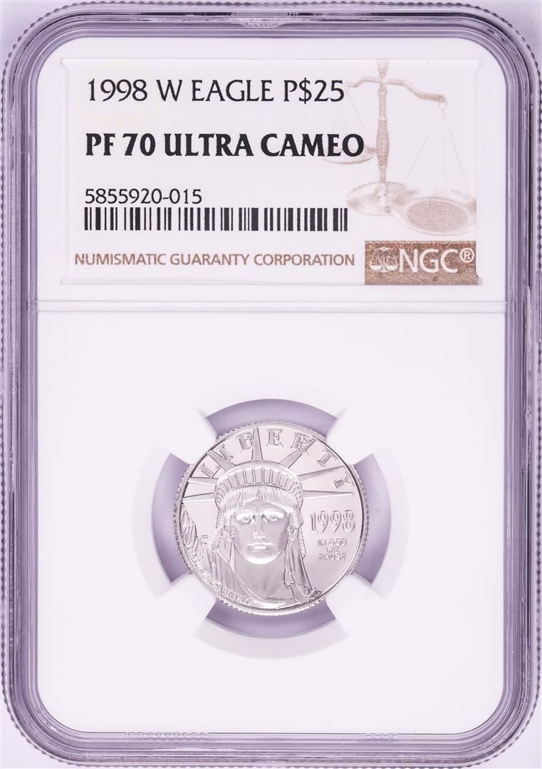 One 1998-W $25 Proof American Platinum Eagle Coin PCGS PF70 Ultra Cameo. PCGS Graded.