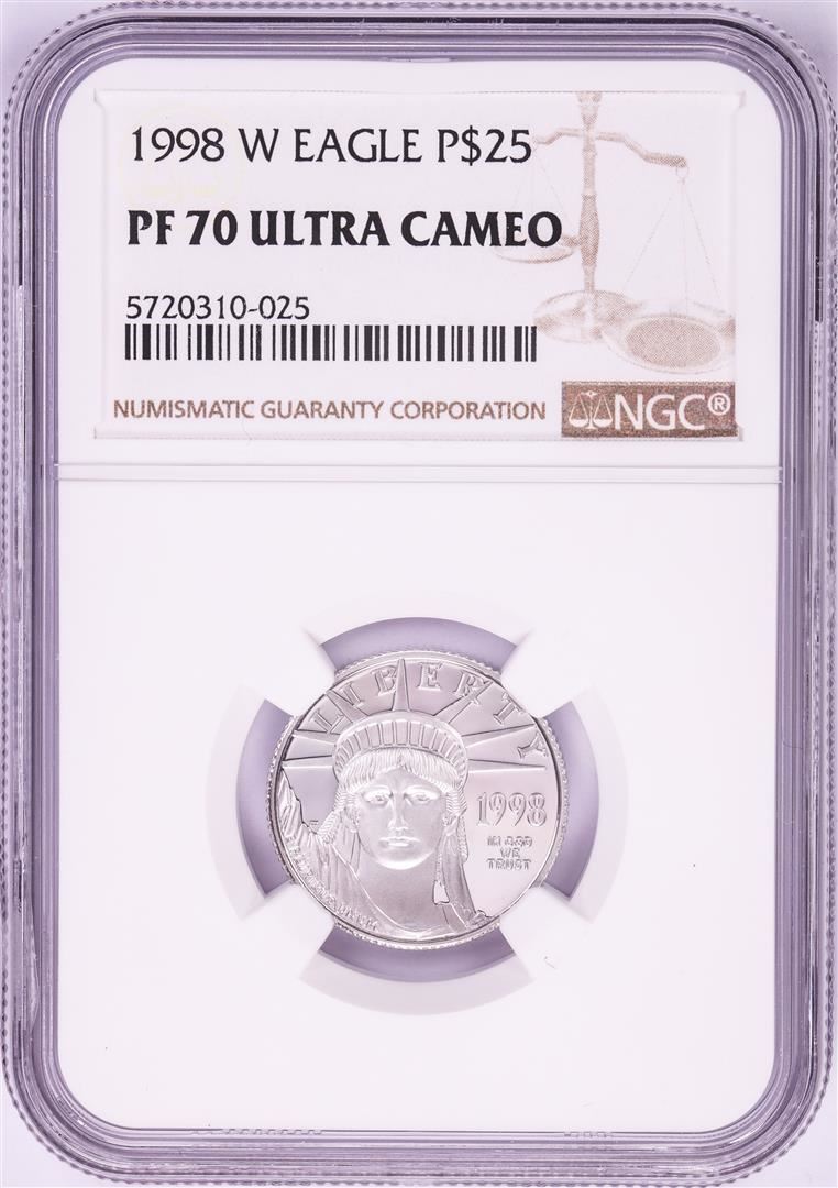 One 1998-W $25 Proof American Platinum Eagle Coin PCGS PF70 Ultra Cameo. PCGS Graded.