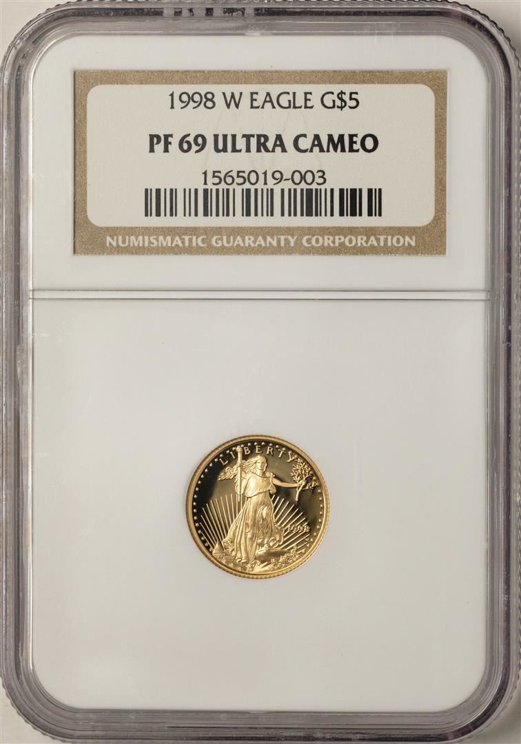 One 1998-W $5 Proof American Gold Eagle Coin NGC PF69 Ultra Cameo. NGC Certified.