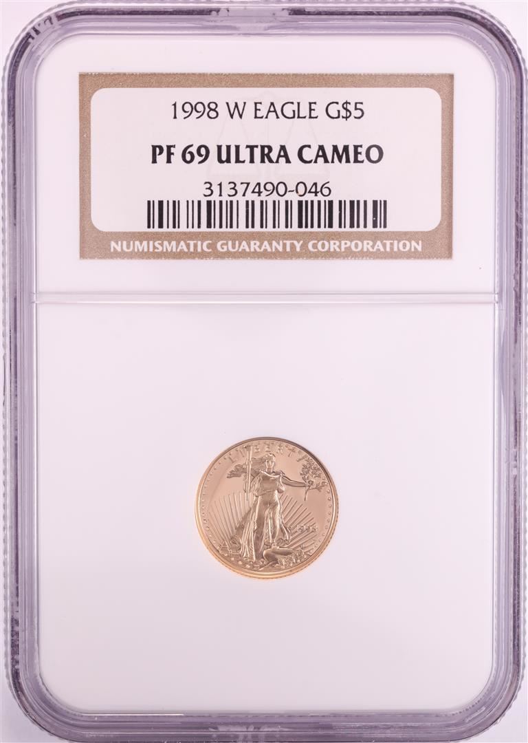 One 1998-W $5 Proof American Gold Eagle Coin NGC PF69 Ultra Cameo. NGC Certified.