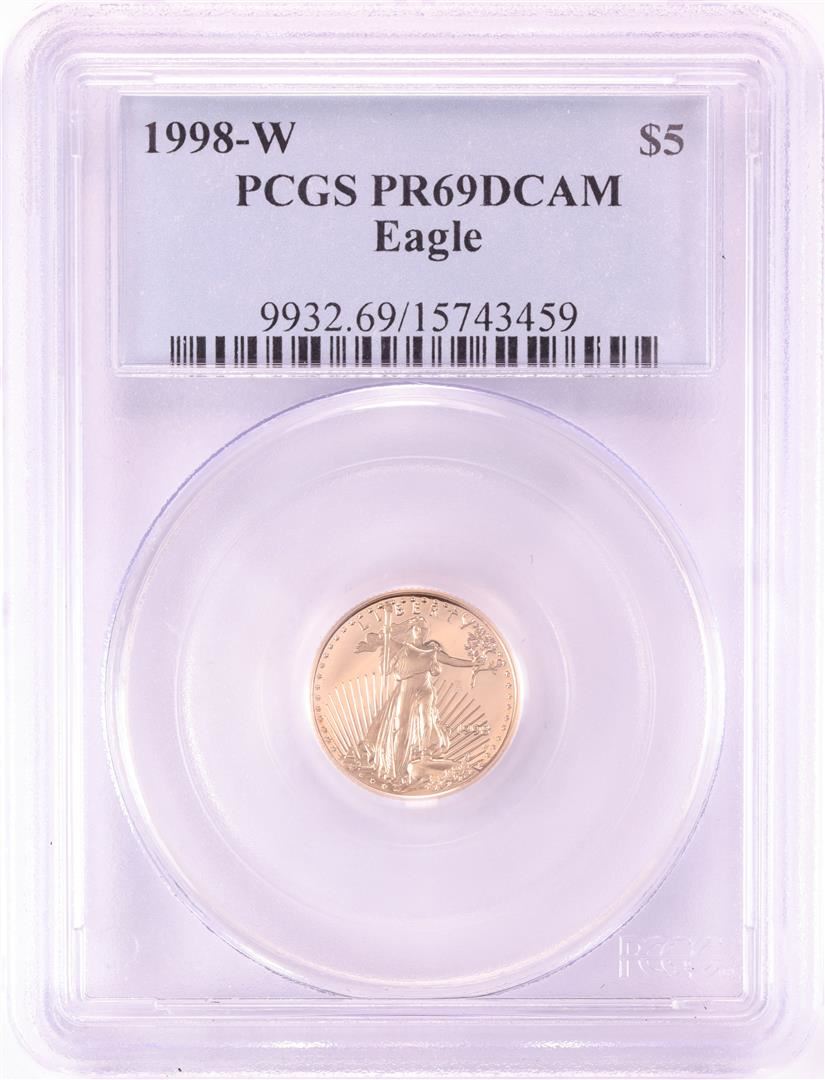 One 1998-W $5 Proof American Gold Eagle Coin PCGS PR69DCAM. PCGS Graded.