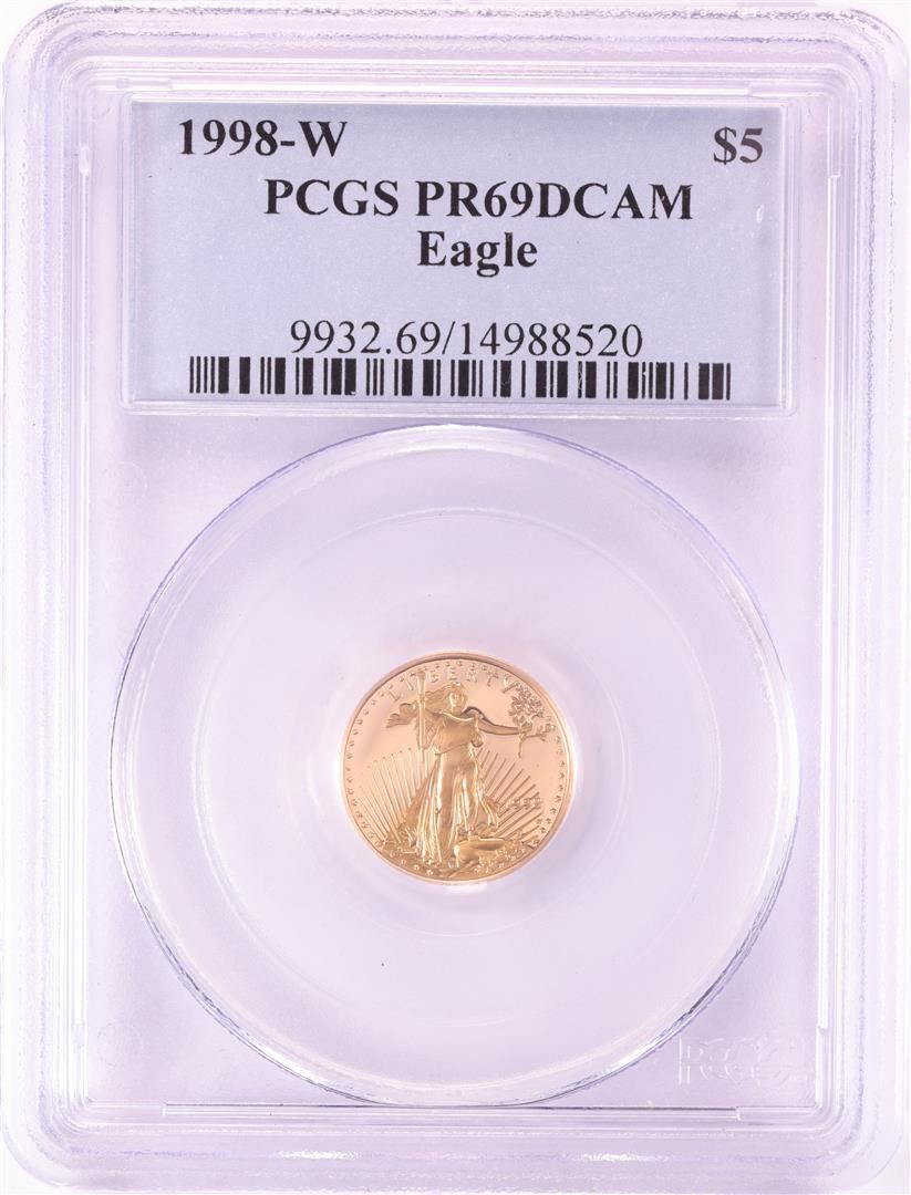 One 1998-W $5 Proof American Gold Eagle Coin PCGS PR69DCAM. PCGS Graded.