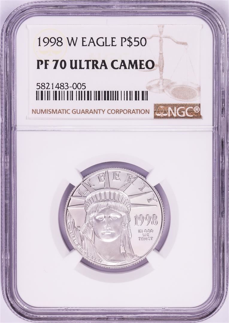 One 1998-W $50 Proof American Platinum Eagle Coin PCGS PF70 Ultra Cameo. PCGS Graded.