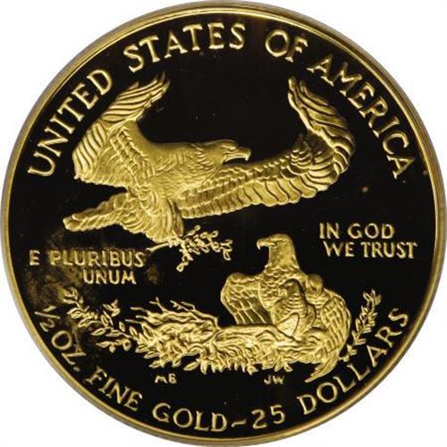 <B>1998-W G$25 Half-Ounce Gold Eagle PR69 Deep Cameo PCGS.</B></I> PCGS Population (542/16). NGC Census: (394/240). Numismedia Wsl. Price for NGC/PCGS coin in PR69: $471. (#9936)<BR><BR><b>Shipping:</b> Coins & Currency (<a target="_blank" href="http://www.heritageauctions.com/common/shipping.php">view shipping information</a>)
