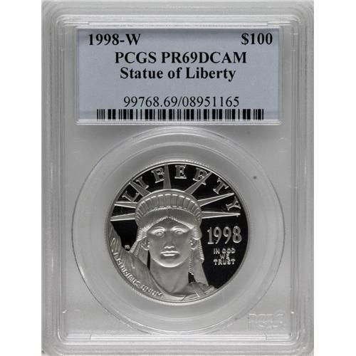 <B>1998-W P$100 One-Ounce Platinum Eagle PR69 Deep Cameo PCGS.</B></I> PCGS Population (906/9). NGC Census: (0/0). Mintage: 26,047. Numismedia Wsl. Price: $1,375. (#99768)<BR><BR><b>Shipping:</b> Coins & Currency (<a target="_blank" href="http://www.heritageauctions.com/common/shipping.php">view shipping information</a>)