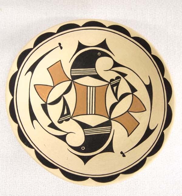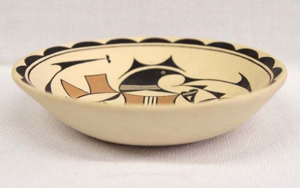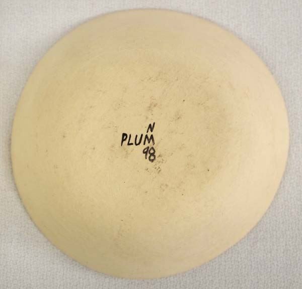Beautiful 1998 Native American Zia Polychrome Bowl by N. Plum, measures 1''H x 3.75''D, signed by artist