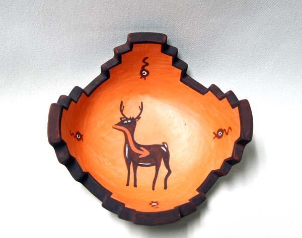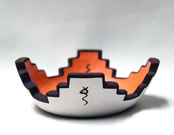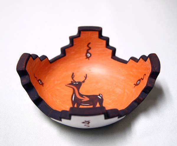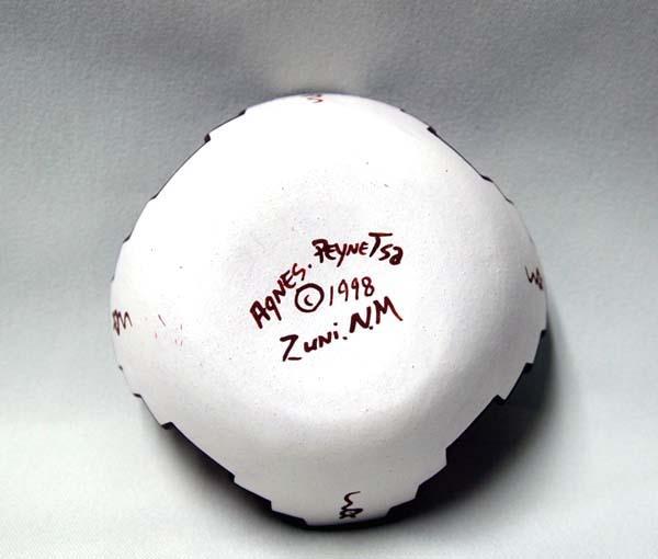 1998 Zuni Altar Prayer Deer & Tadpole Pottery Miniature Bowl by Agnes Peynetsa. Measures approx. 1.25 x 3.5''. SHI $20