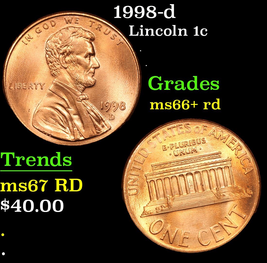 1998-d Lincoln Cent 1c Grades GEM++ RD.
