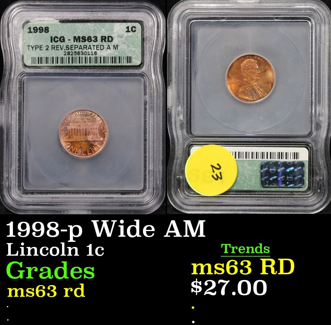 1998-p Wide AM Lincoln Cent 1c Graded Select Unc RD By ICG.