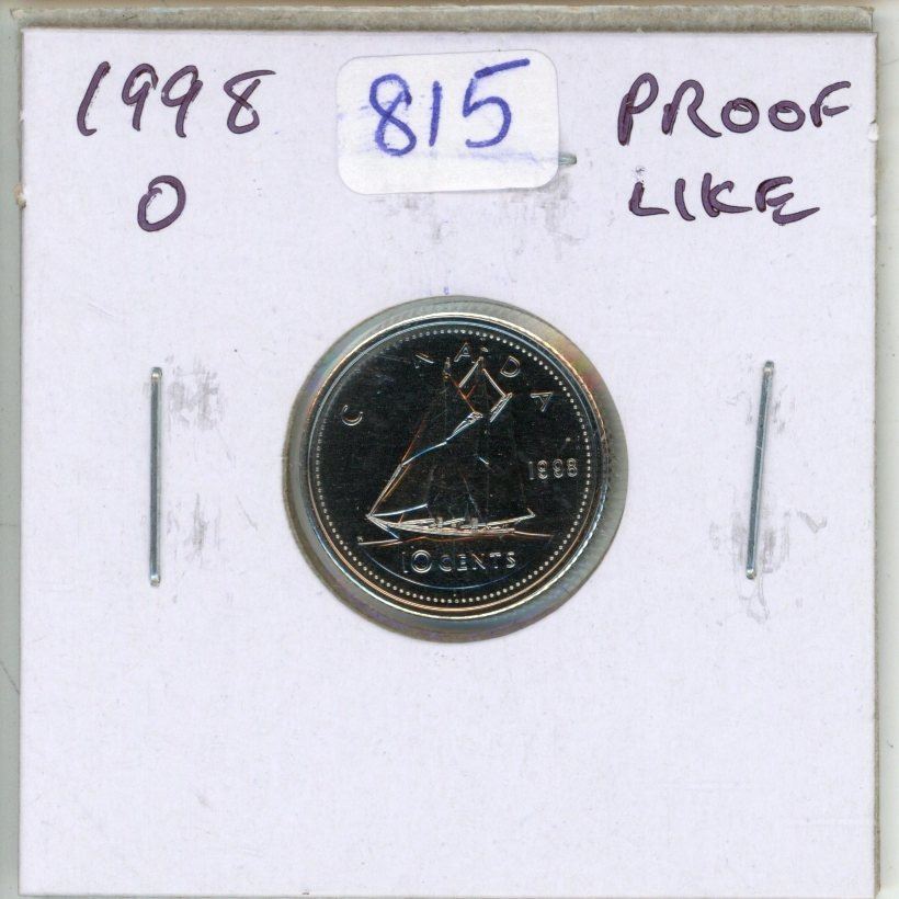 1998O 10 Cents. Taken from an Ottawa Proof Like Set.