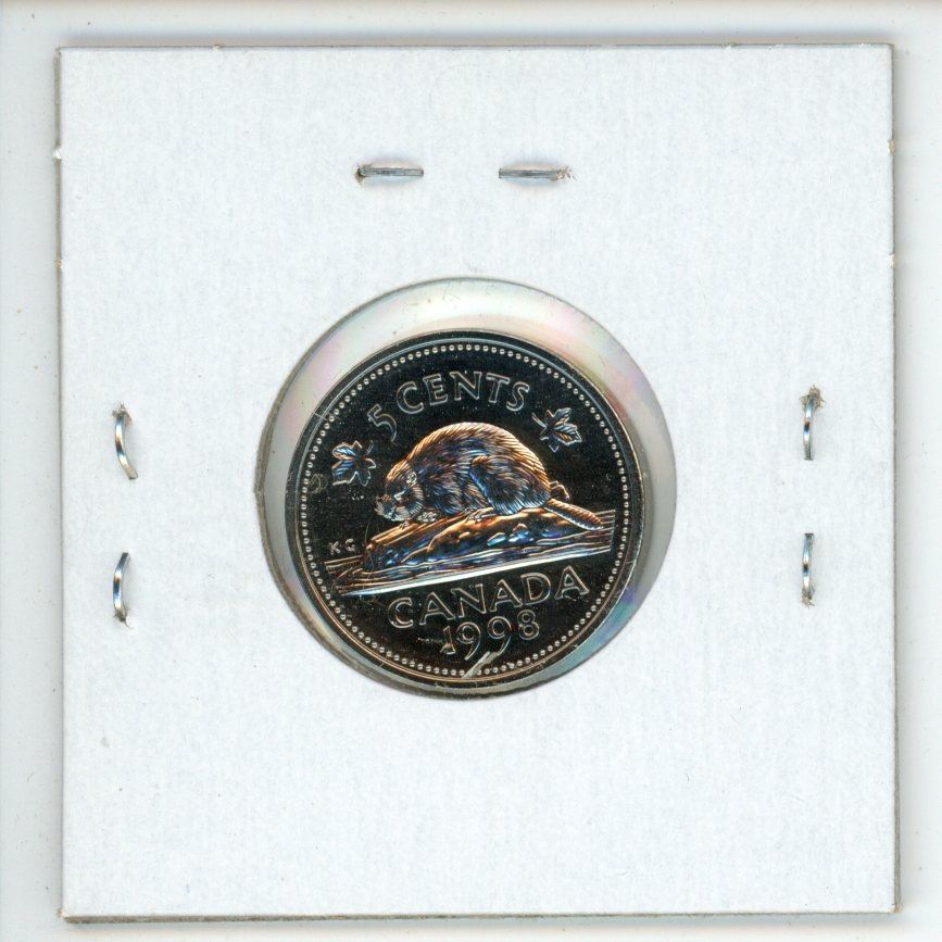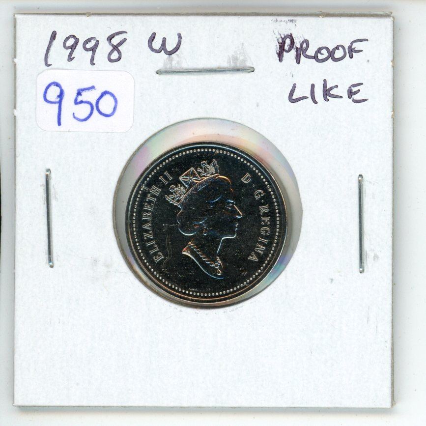 1998W Canadian 5 Cents. W Mint Mark for Winnipeg. Proof Like-65.