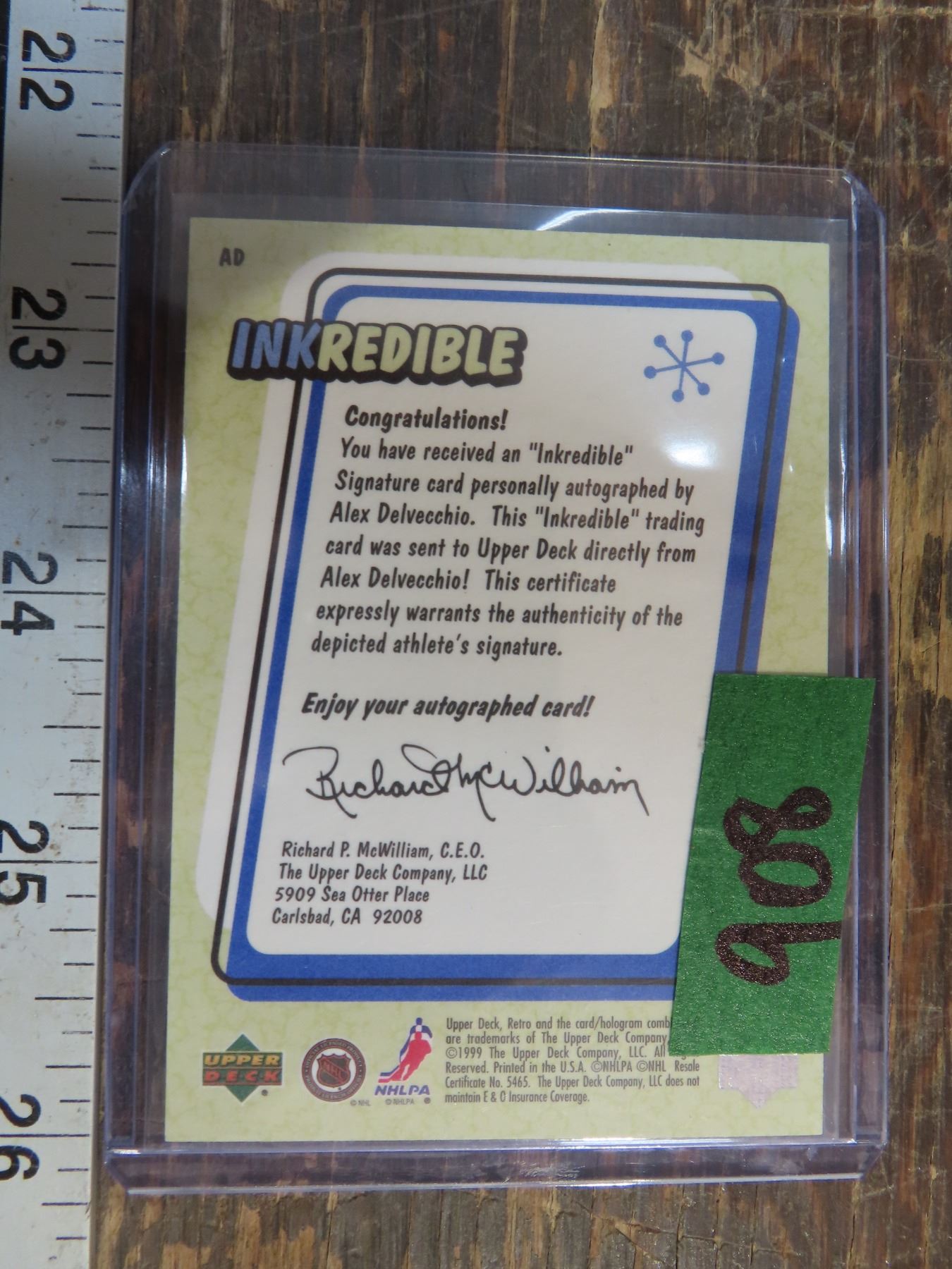 1999-00 Alex Delvecchio Autograph Card