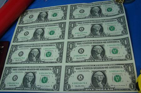 1999 $1.00 Uncut Sheet of 8 Federal Reserve Notes