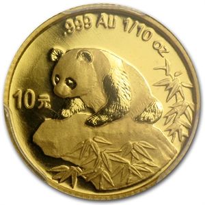 1999 (1/10 oz) Gold Chinese Pandas - MS-69 PCGS Small D **|**|** Year: 1999 ; Mint Mark: MS-69 ; Grade: N/A ; Denomination: 10 Yuan ; MSRP: $1300