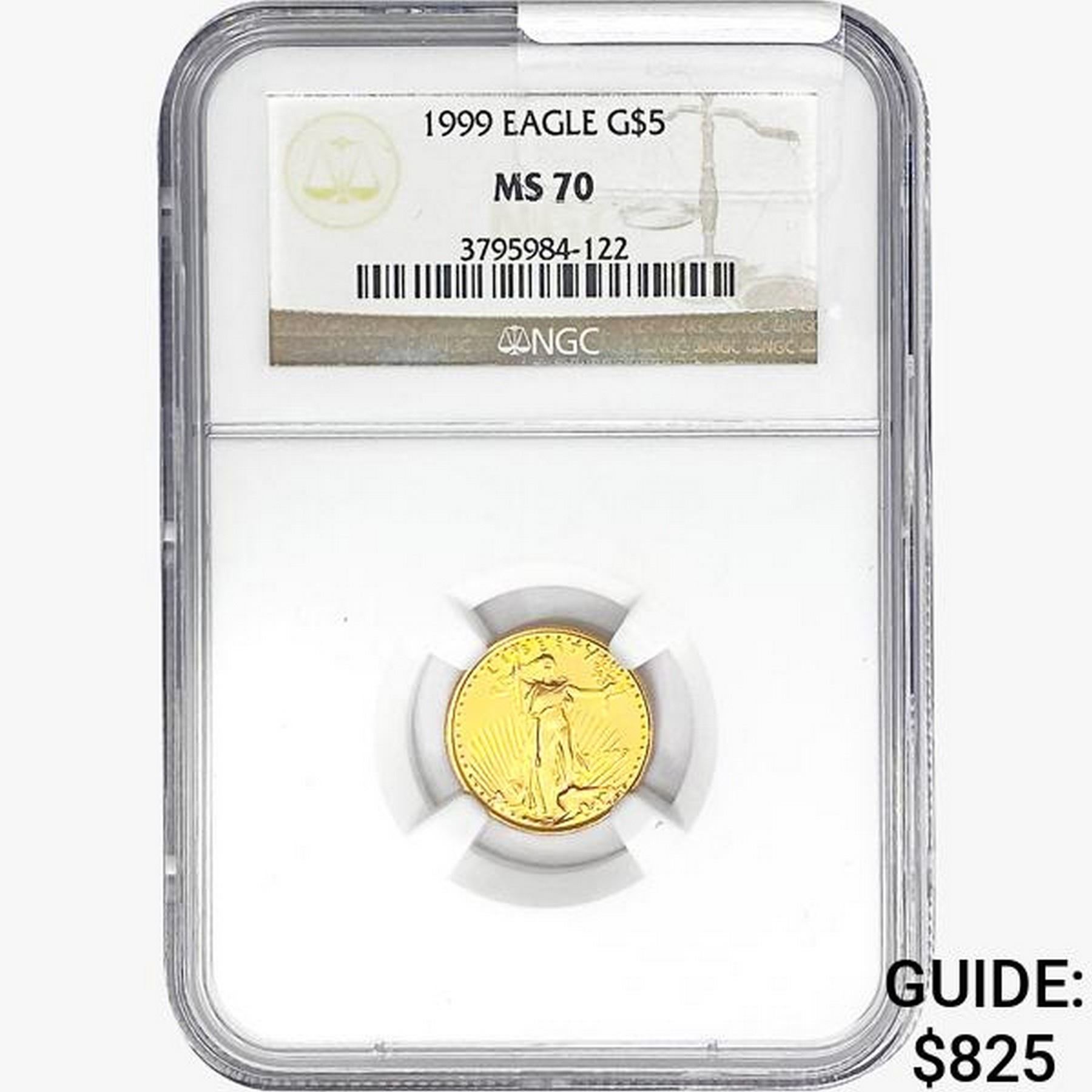 1999 1/10oz $5 AGE NGC MS70