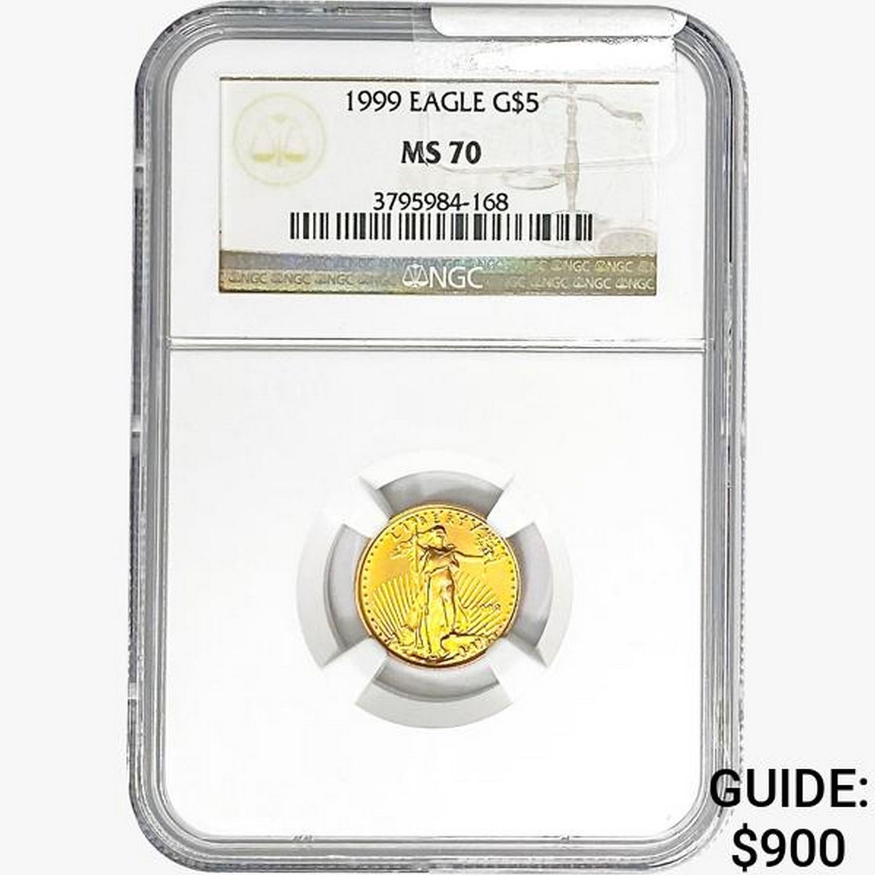 1999 1/10oz $5 AGE NGC MS70