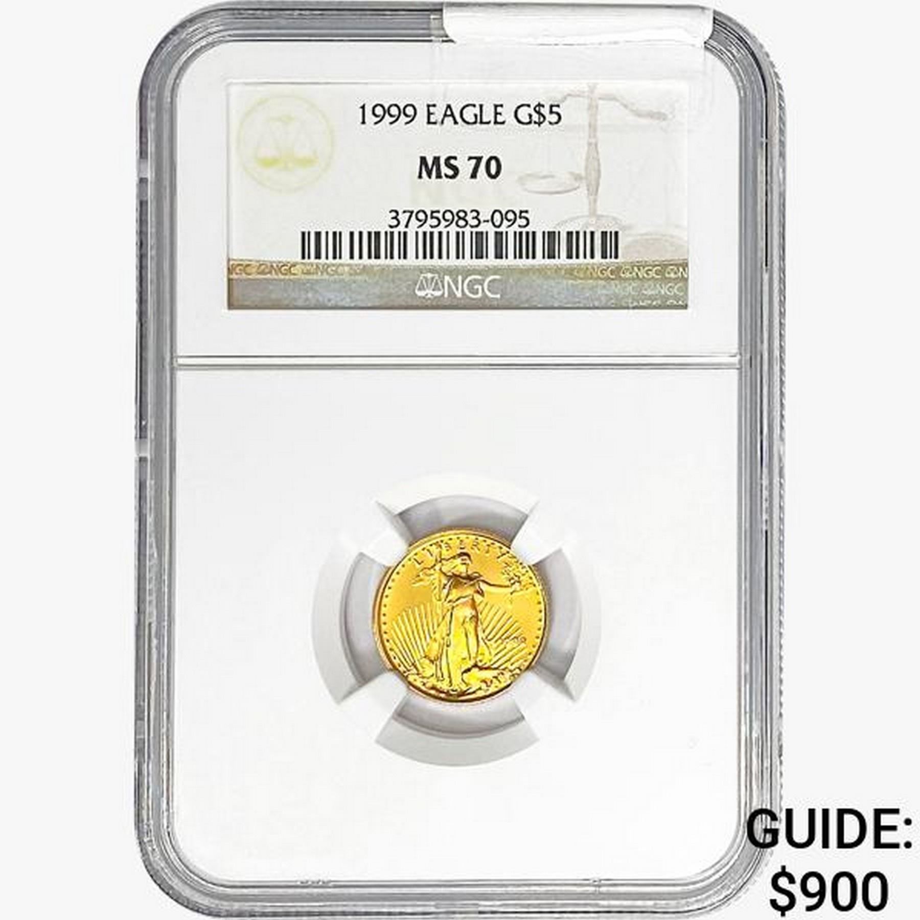 1999 1/10oz $5 AGE NGC MS70