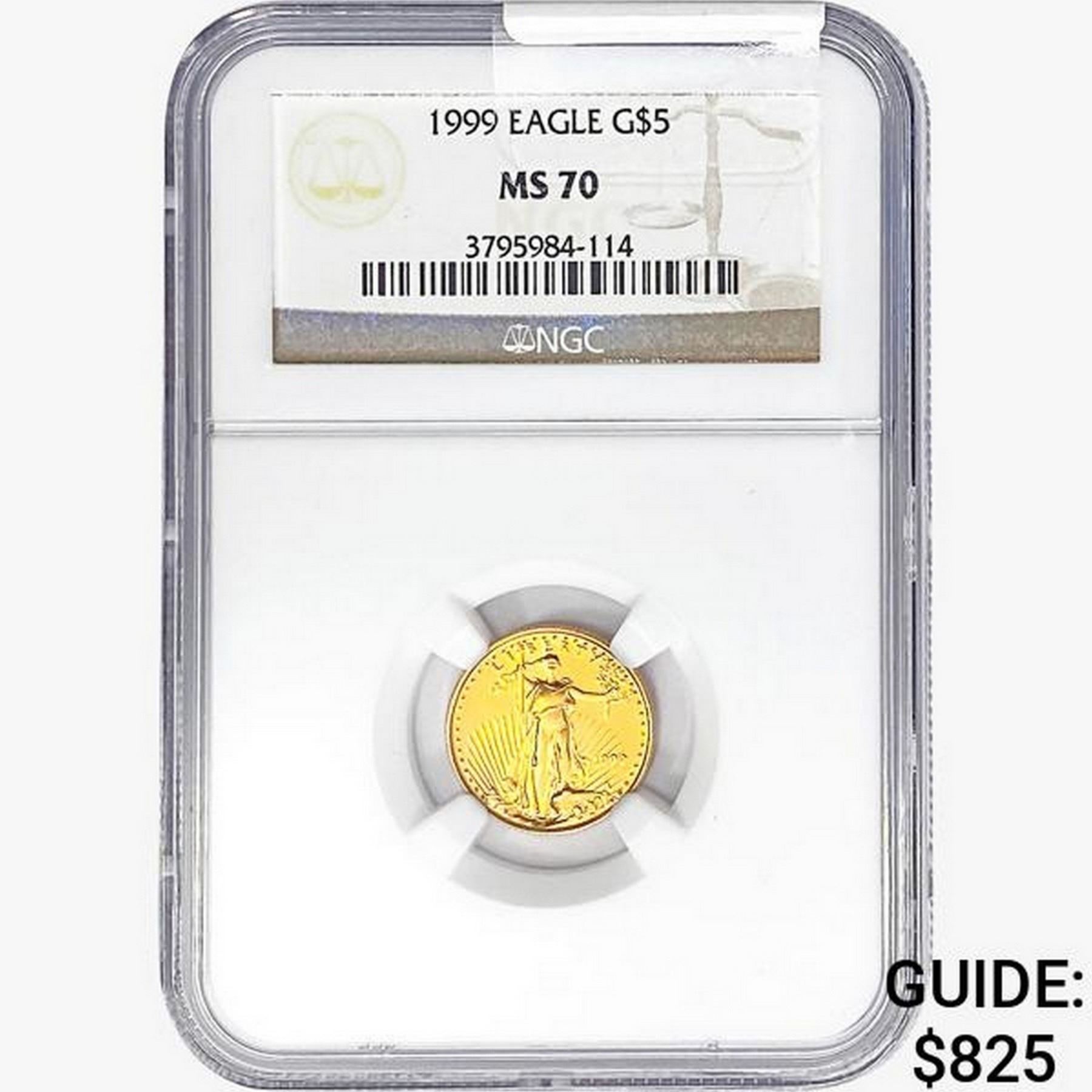 1999 1/10oz $5 Gold Eagle NGC MS70