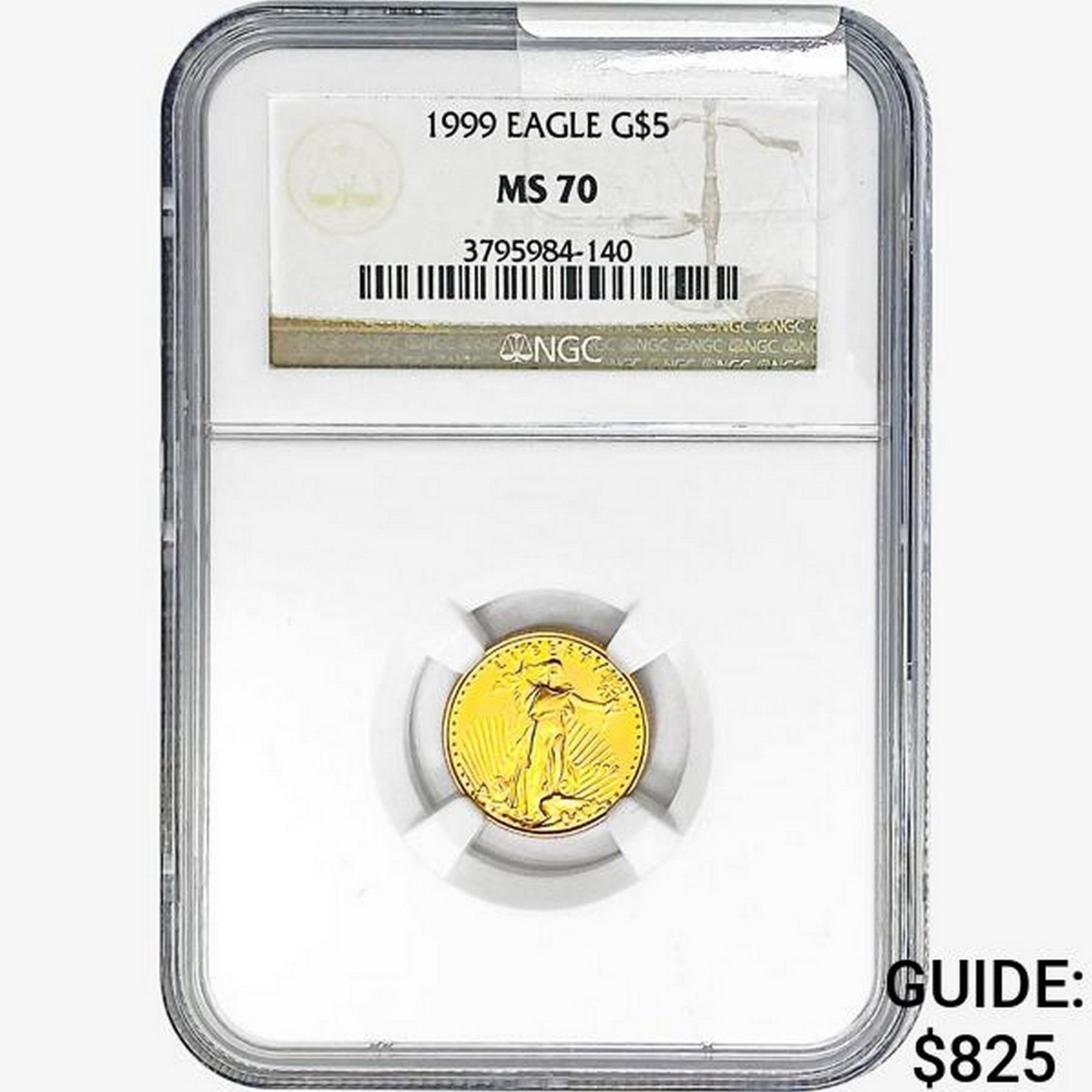 1999 1/10oz $5 Gold Eagle NGC MS70