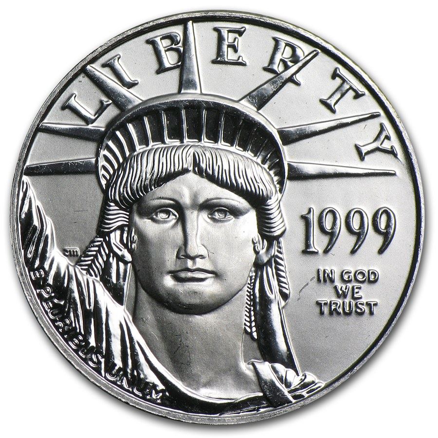 Product ID: 75866 Year: 1999 Grade: Brilliant Uncirculated Grade Service: None Mint Mark: None Metal Content: 0.25 troy oz Purity: .9995 Manufacturer: U.S. Mint Thickness: 1.32 mm Diameter: 22 mm