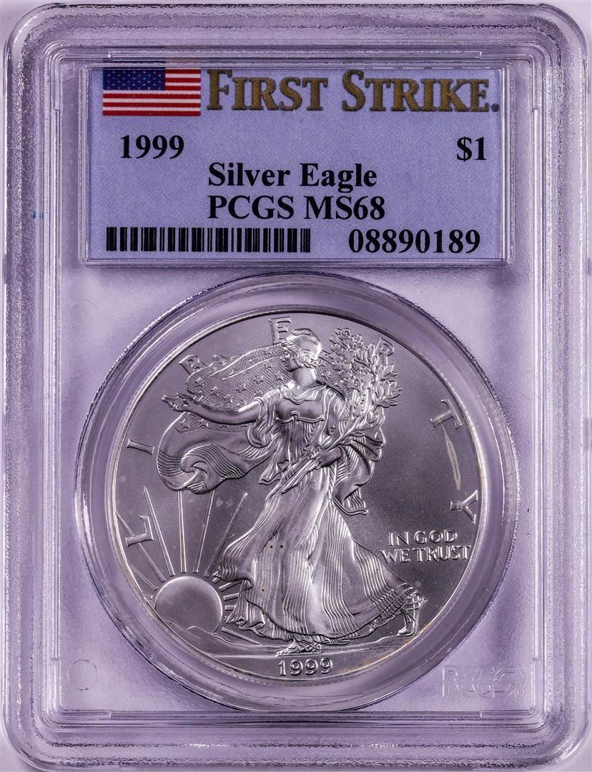 One 1999 $1 American Silver Eagle Coin PCGS MS68 First Strike. PCGS Graded.