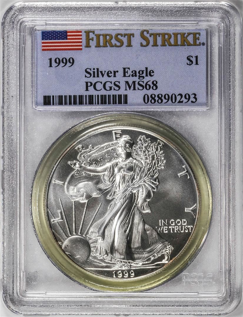 One 1999 $1 American Silver Eagle Coin PCGS MS68 First Strike. PCGS Graded.