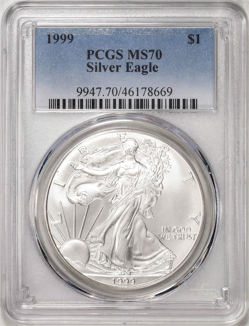 One 1999 $1 American Silver Eagle Coin PCGS MS70. PCGS Graded.
