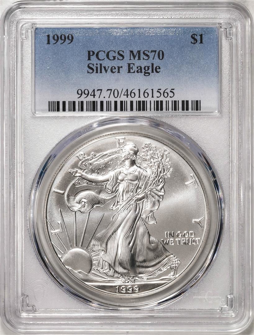 One 1999 $1 American Silver Eagle Coin PCGS MS70. PCGS Graded.