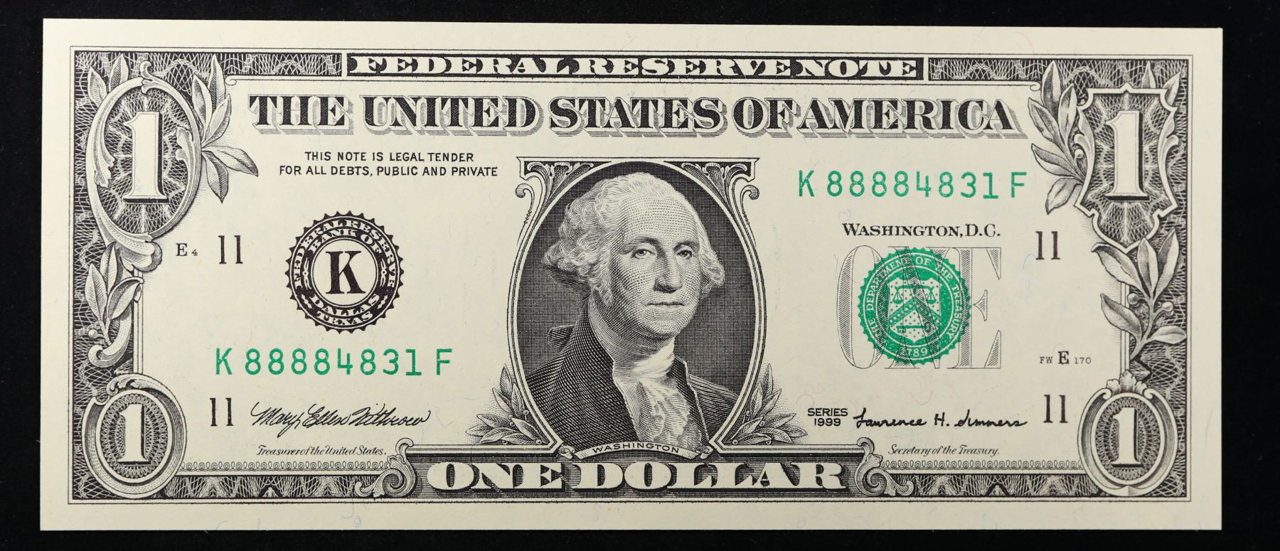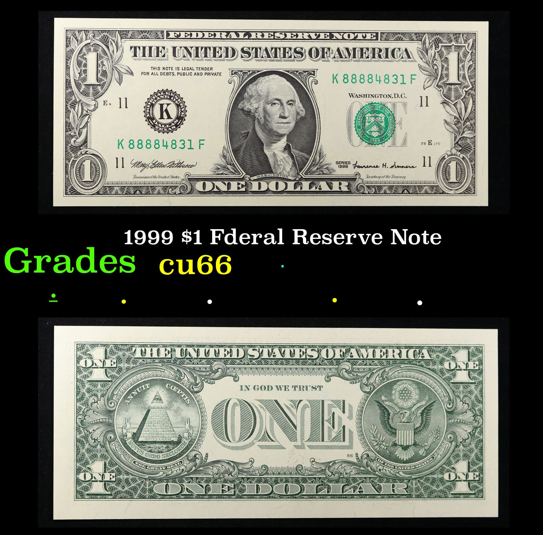 1999 $1 Fderal Reserve Note Grades Gem+ CU.