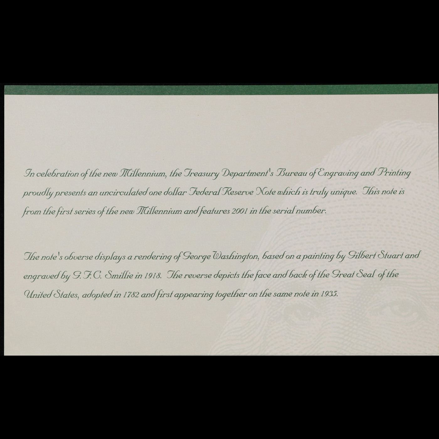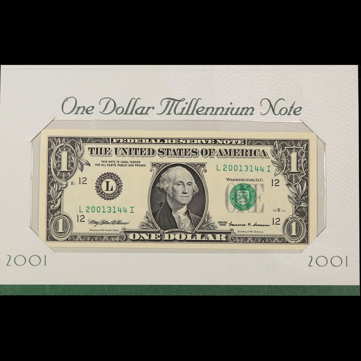1999 $1 Federal Reserve Note, BEP Uncirculated Folio Issue "Millennium Note" (San Francisco, CA) Gra