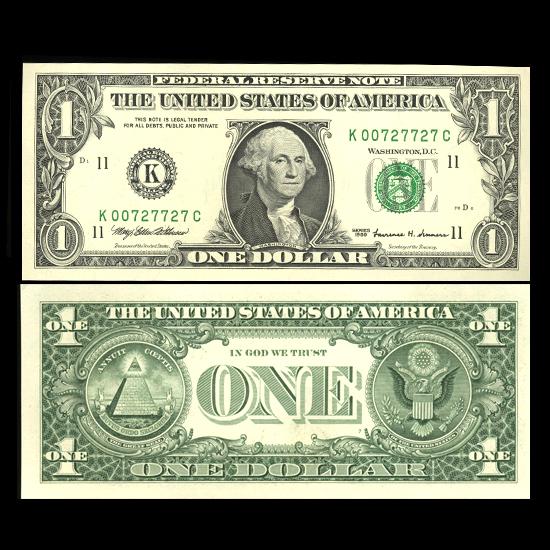 1999 $1 Federal Reserve Note Crisp Unc FANCY NUMBER (CUR-05983)