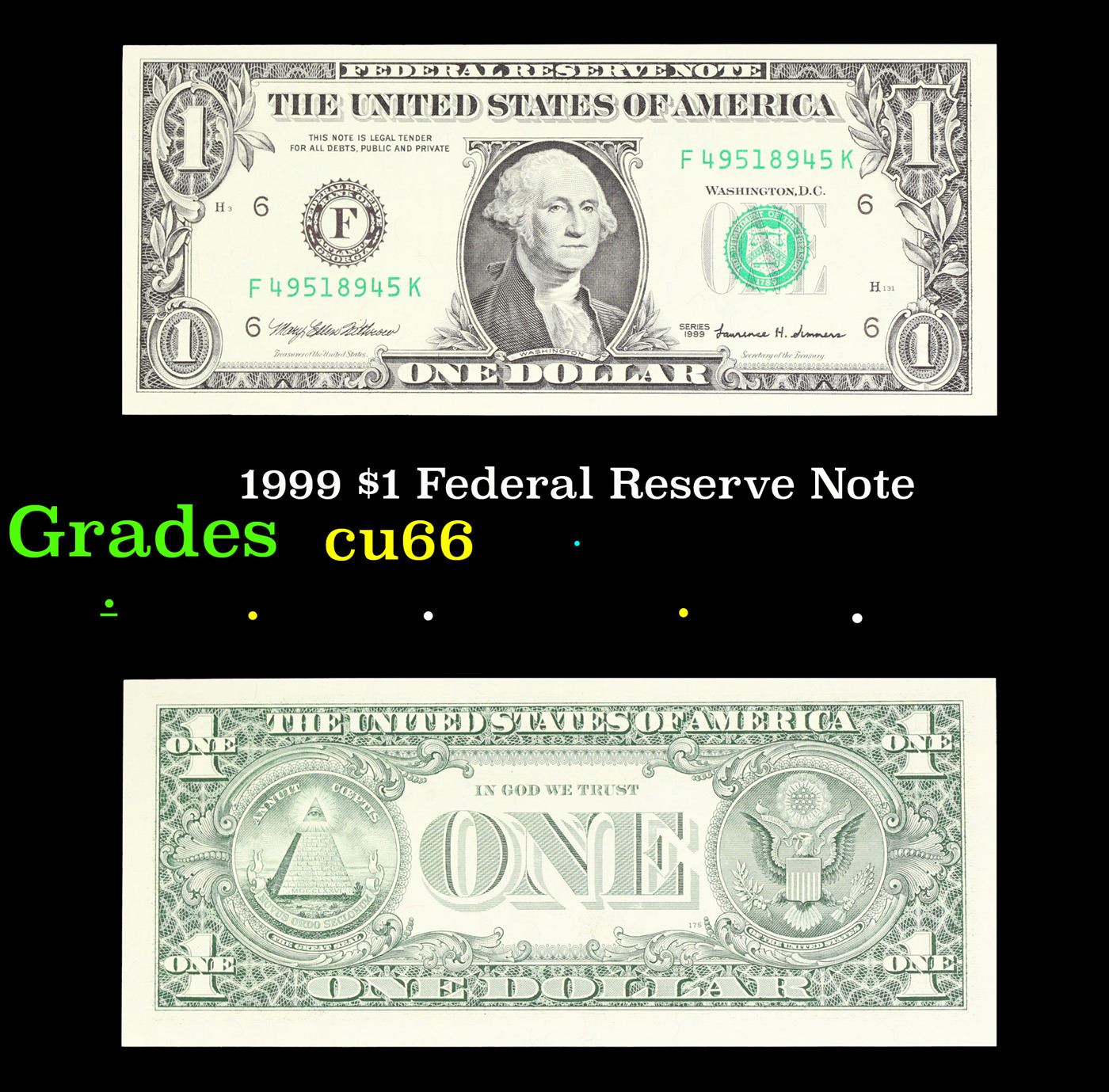 1999 $1 Federal Reserve Note Grades Gem+ CU.