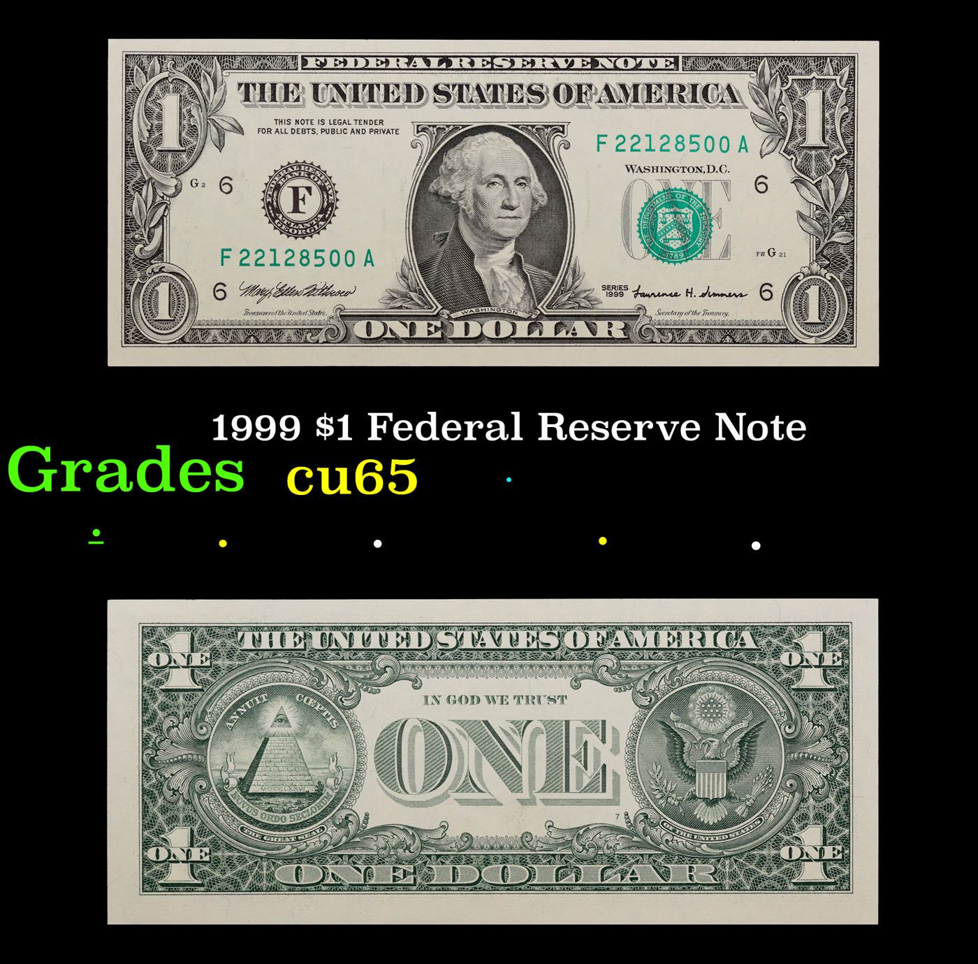 1999 $1 Federal Reserve Note Grades Gem CU.