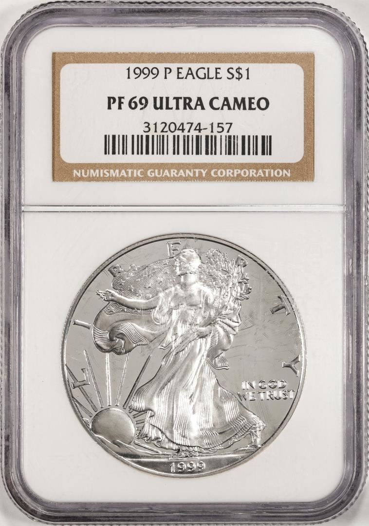 One 1999 $1 Proof American Silver Eagle Coin NGC PF69 Ultra Cameo. NGC Certified.