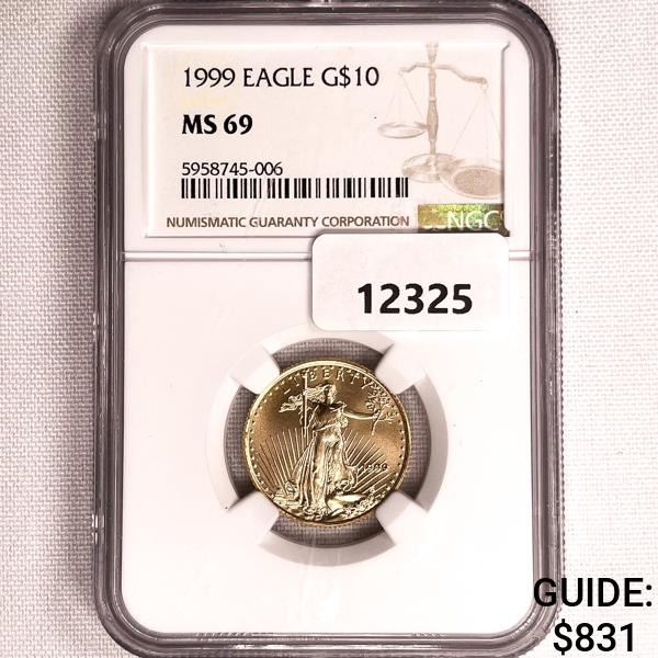 1999 $10 Gold 1/4oz American Gold Eagle NGC-MS69