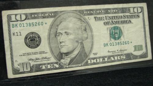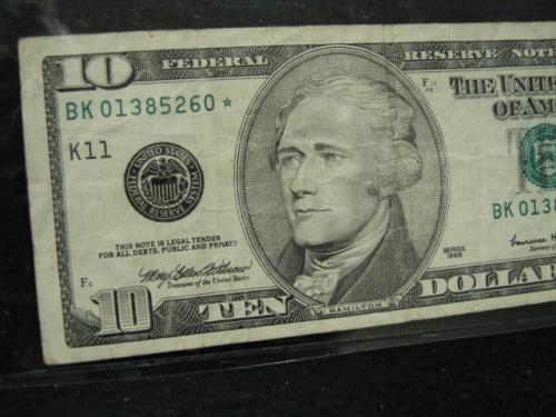 1999 $10 U.S. FEDERAL RESERVE NOTE. Green seal. Star note.