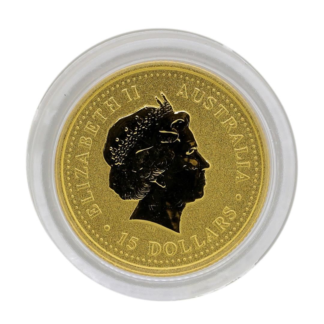 One 1999 $15 Australia Lunar Year of the Rabbit 1/10 oz. Gold Coin.